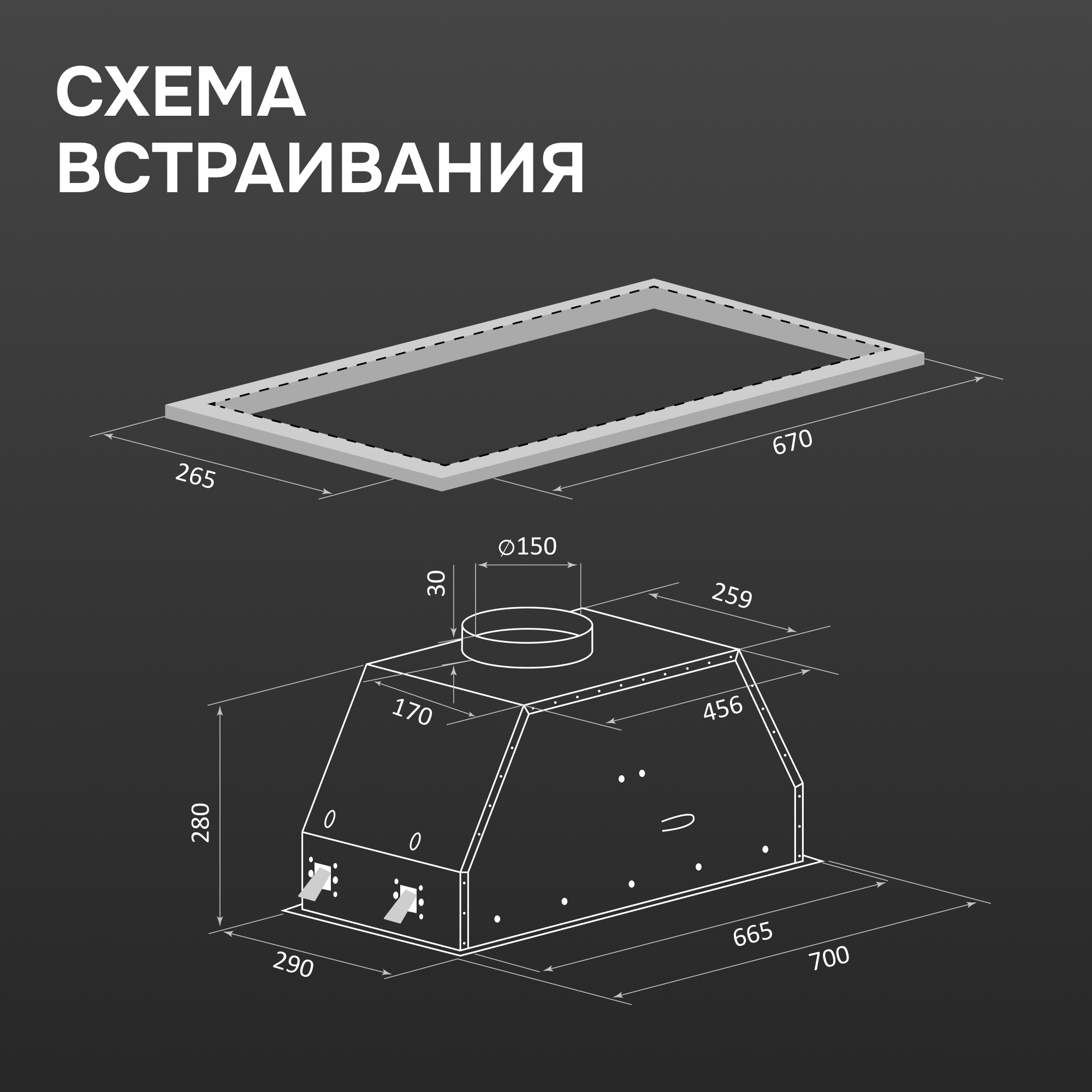 | Ниша для встраивания (ШхГхВ), мм | 670*265 |
