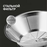 | Конструктивные особенности | широкий желоб под целый плод с диметром загрузочного отверстия 65 мм, фильтр из высококачественной нержавеющей стали, металлический фиксатор крышки, прозрачная крышка позволяет контролировать рабочий |