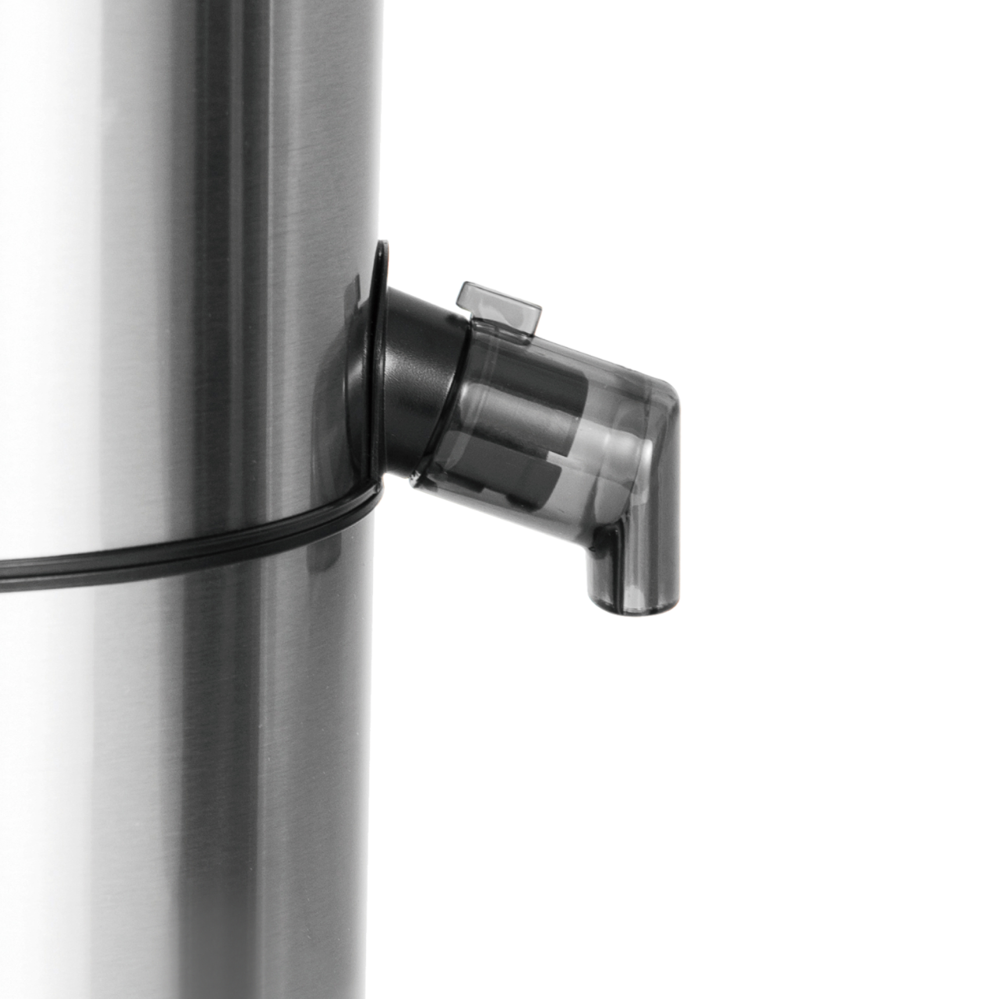Соковыжималка EJ-757 имеет специальную ёмкость для сбора готового сока объемом 0,45 л, а также большой съемный резервуар для сбора жмыха объемом 1,5 л. Прозрачная крышка позволяет постоянно контролировать рабочий процесс. Прорезиненные ножки обеспечивают соковыжималке дополнительную устойчивость. Устройство также оснащено системой защиты: при перегреве или неправильной сборке оно автоматически отключается. Корпус соковыжималки EJ-757 из высококачественной нержавеющей стали отличается не только прочностью и долговечностью, но и стильным элегантным дизайном.