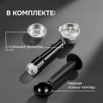 | Комплектация | кофеварка, фильтр стальной для рожка 2 шт, мерная ложка-темпер, инструкция с рецептами, гарантийный талон |