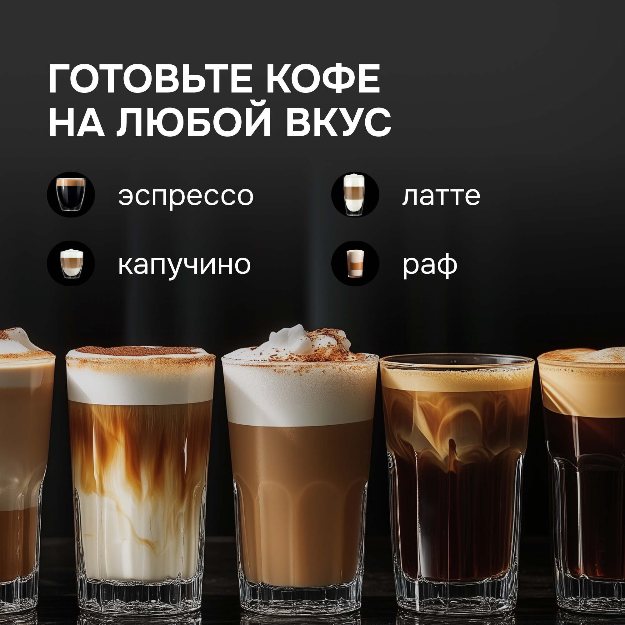 Мощная итальянская помпа обеспечивает высокое давление. Благодаря этому достигается идеальная экстракция кофе и сохраняются все его вкусовые качества. Встроенный термостат контролирует температуру воды. Функция добавления горячей воды поможет приготовить ароматный американо. Ручной капучинатор сделает пышную молочную пену для капучино, латте или флэт уайта.