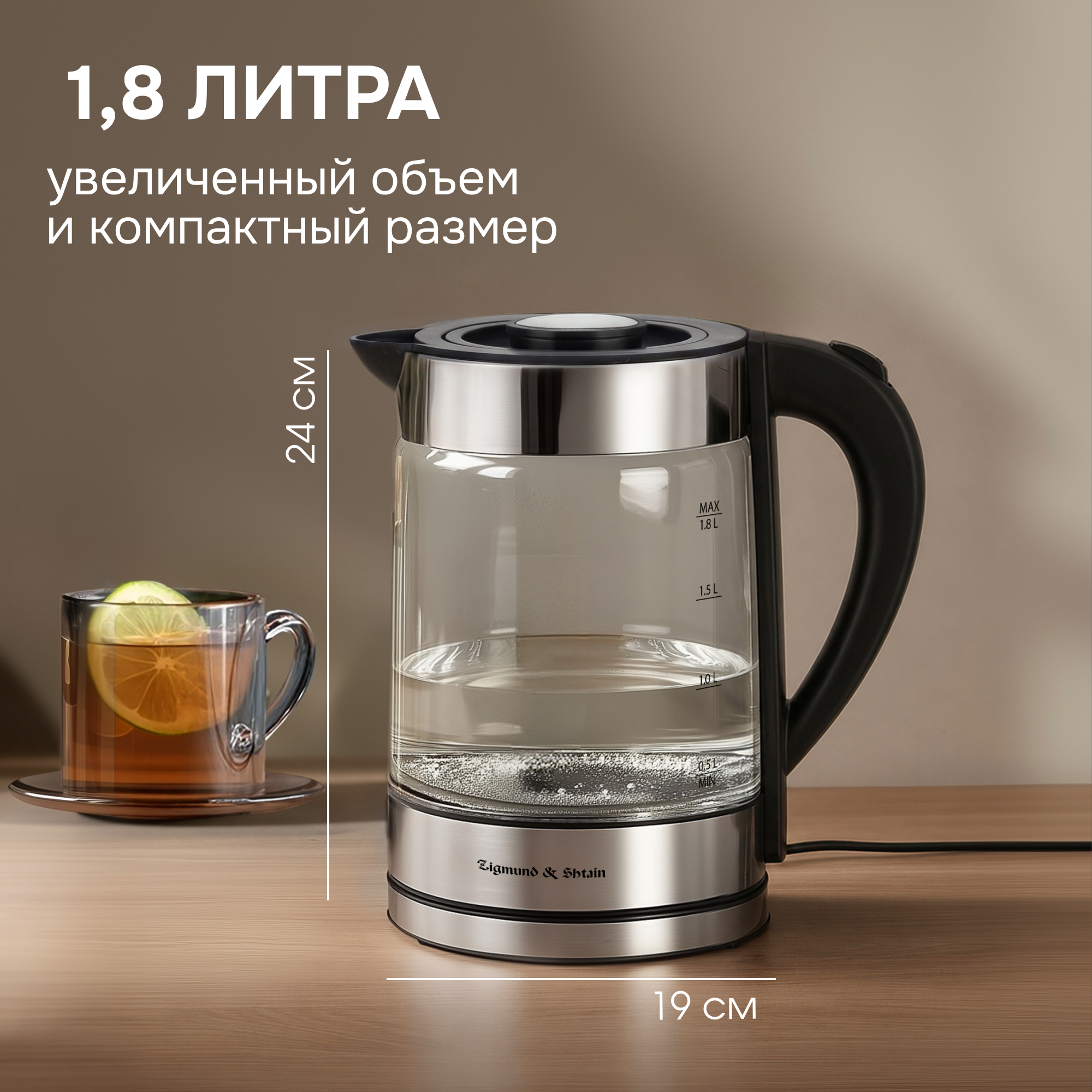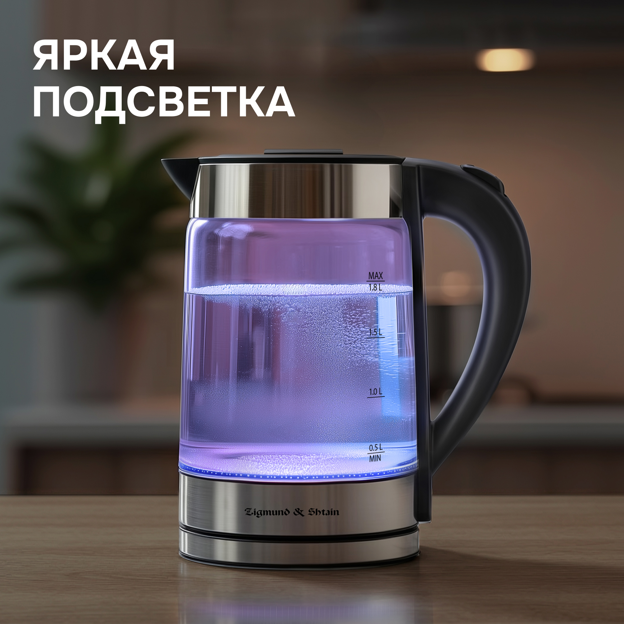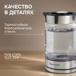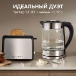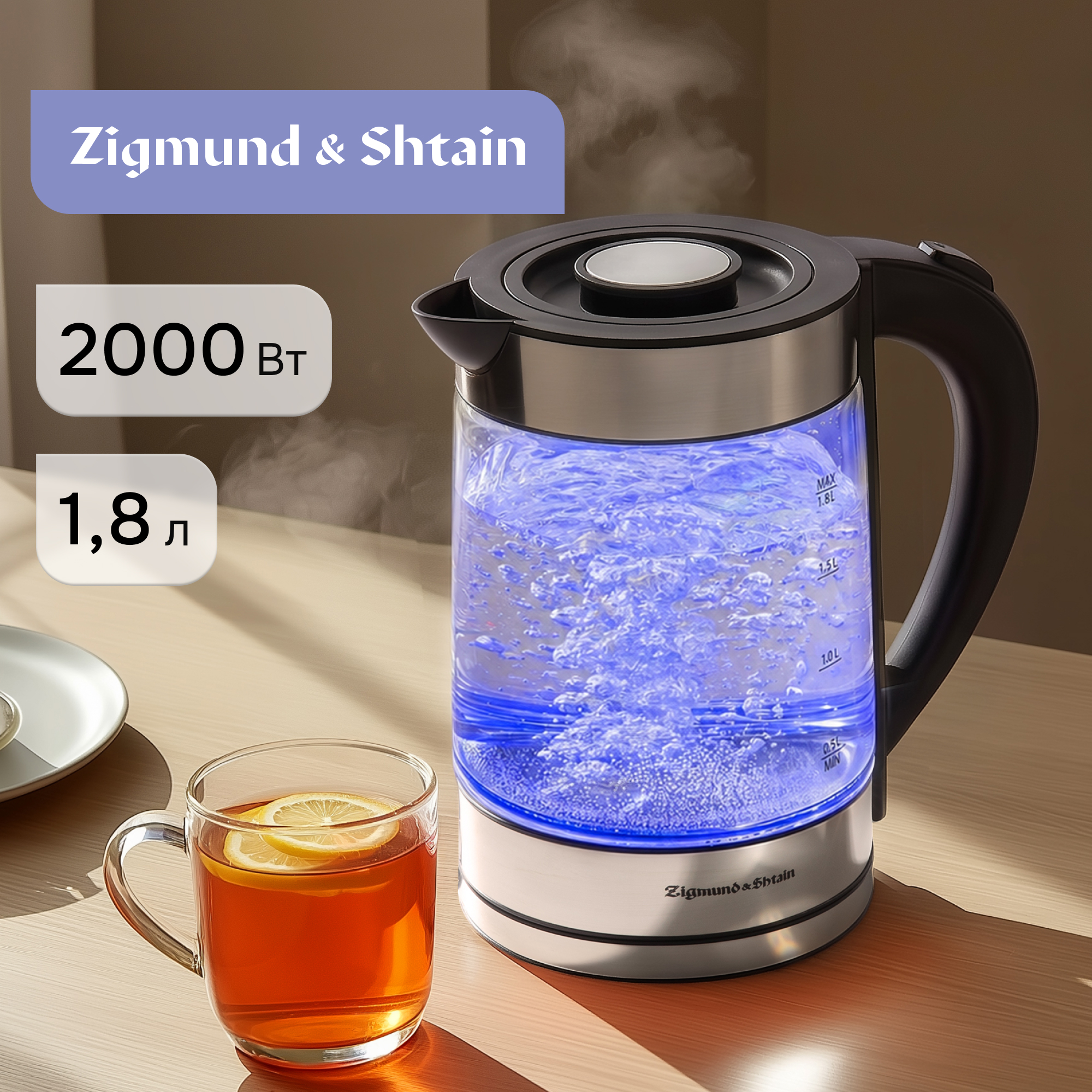 Чайник KE-913 от Zigmund & Shtain – стильный и функциональный прибор объемом 1,8 л и с максимальной мощностью 2000 Вт. Корпус чайника выполнен из безопасного термостойкого боросиликатного стекла, который не изменяет вкус и цвет воды, не выделяет бисфенол или какие-либо другие опасные вещества. Основание корпуса изготовлено из пищевой нержавеющей стали SUS 304, благодаря чему прибор прослужит долгие годы, сохраняя первоначальный вид. Чайник KE-913 оснащен шкалой уровня воды и LED подсветкой корпуса. Безопасность использования обеспечивает закрытый дисковый стальной нагревательный элемент, а также два уровня защиты, а именно автоматическое отключение при закипании и при недостаточном количестве воды.