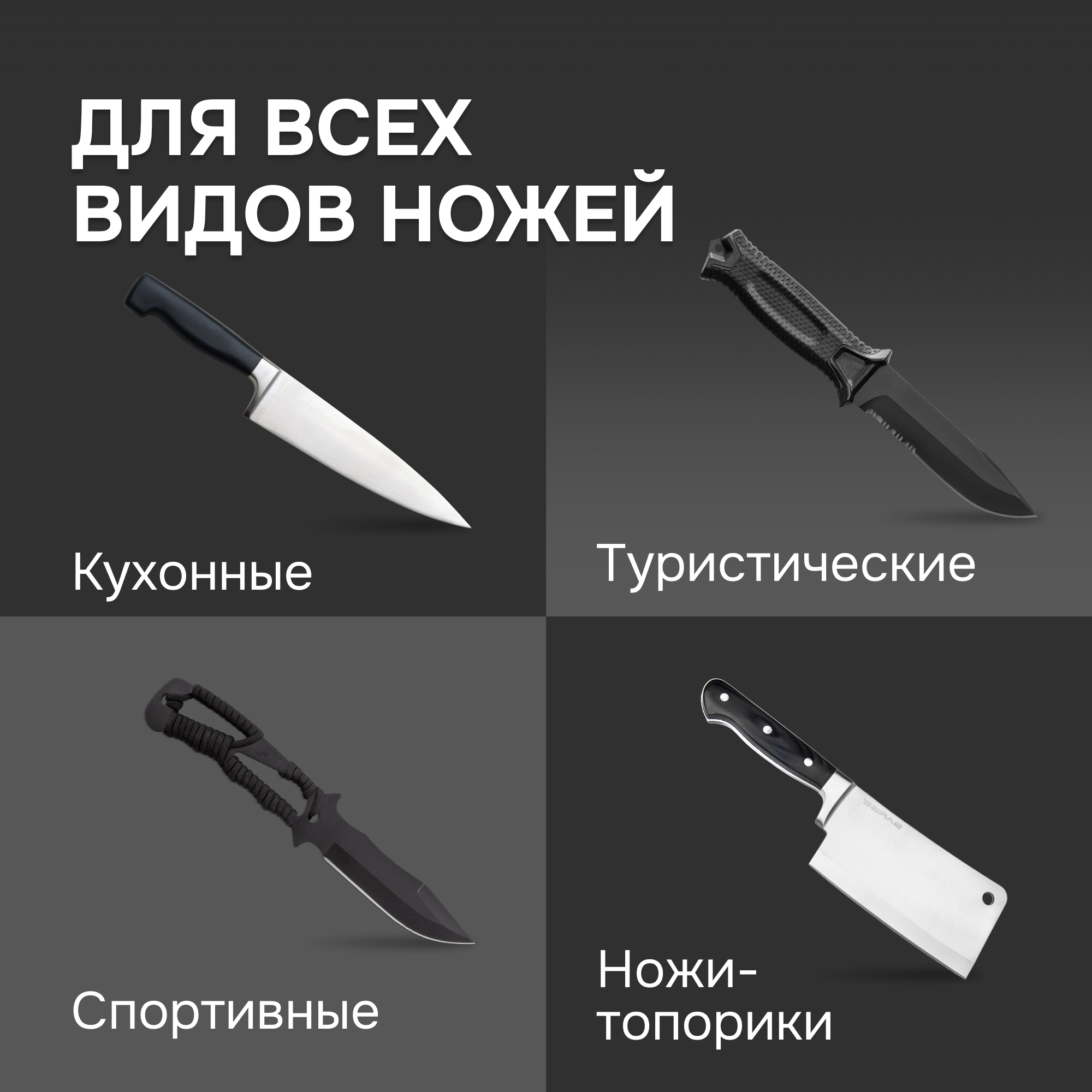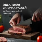 · Одинаково бережно затачивает как ножи из мягкой легированной, так и из самой твердой углеродистой стали, а также керамические