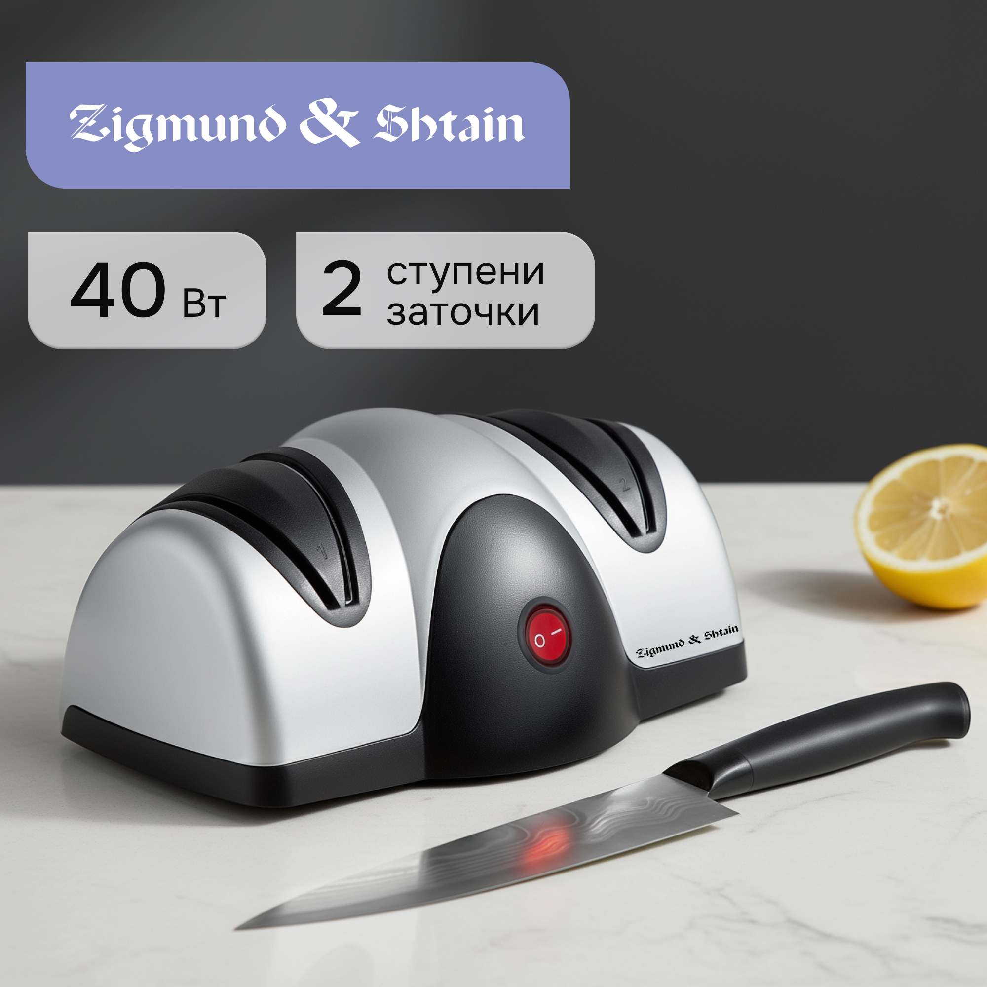Электрическая ножеточка Sharpprofi ZKS-912 от компании Zigmund & Shtain – это незаменимый прибор для профессиональной заточки ножей в домашних условиях. Предназначена для европейских кухонных, туристических, спортивных и пр. ножей с симметричной двусторонней заточкой, а также для азиатских типа Сантоку. Затачивает ножи из нержавеющей, легированной и углеродистой стали. Подходит для заточки керамических ножей.