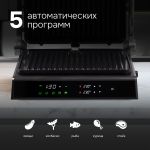 | Функциональные особенности | 4 в 1: гриль/барбекю/запекание / сэндвич-тостер, авторегулировка высоты верхней панели, 5 автоматических программ + ручной режим |