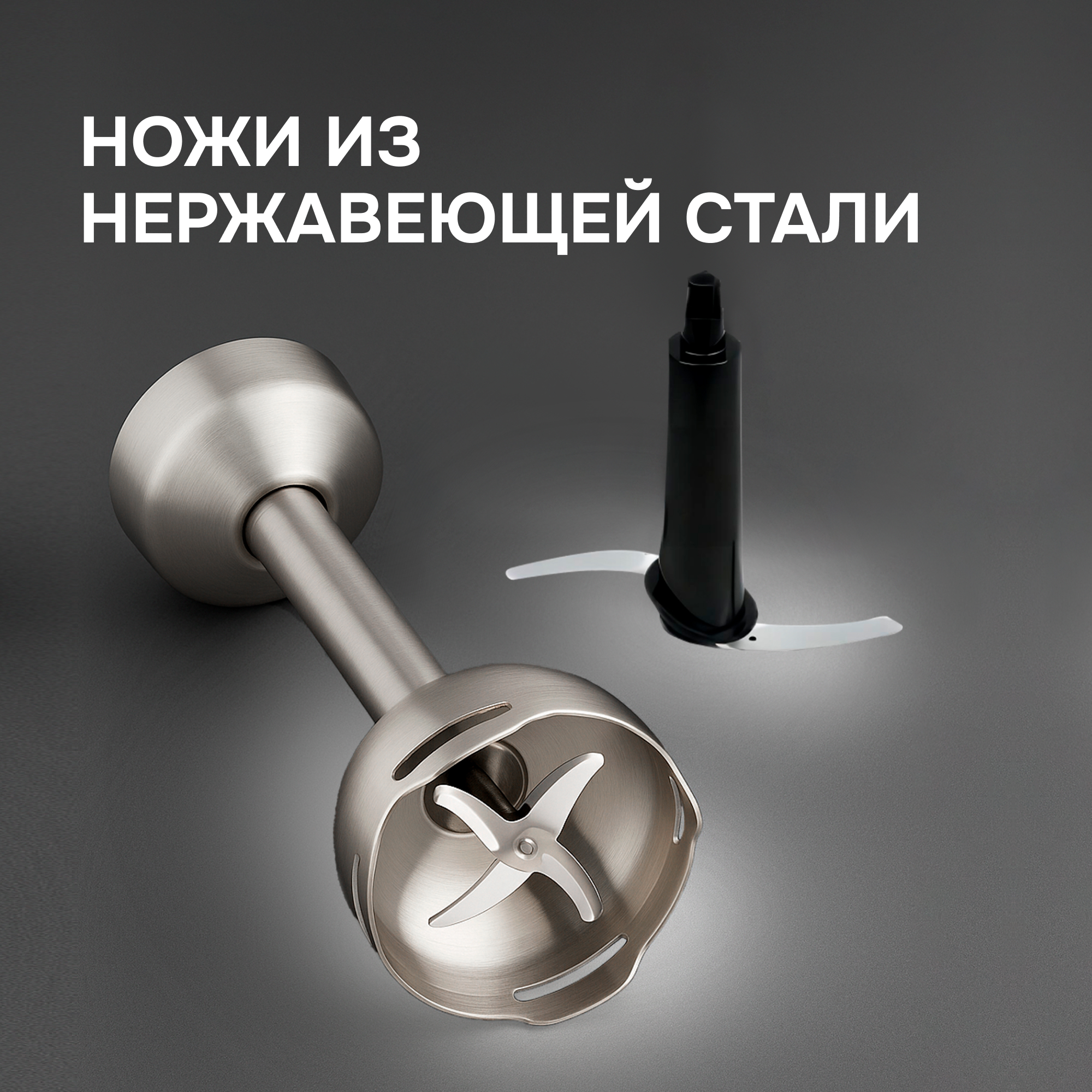● Расширенная комплектация: насадка-блендер, насадка-венчик, насадка-измельчитель, чаша для измельчения и стакан для смешивания