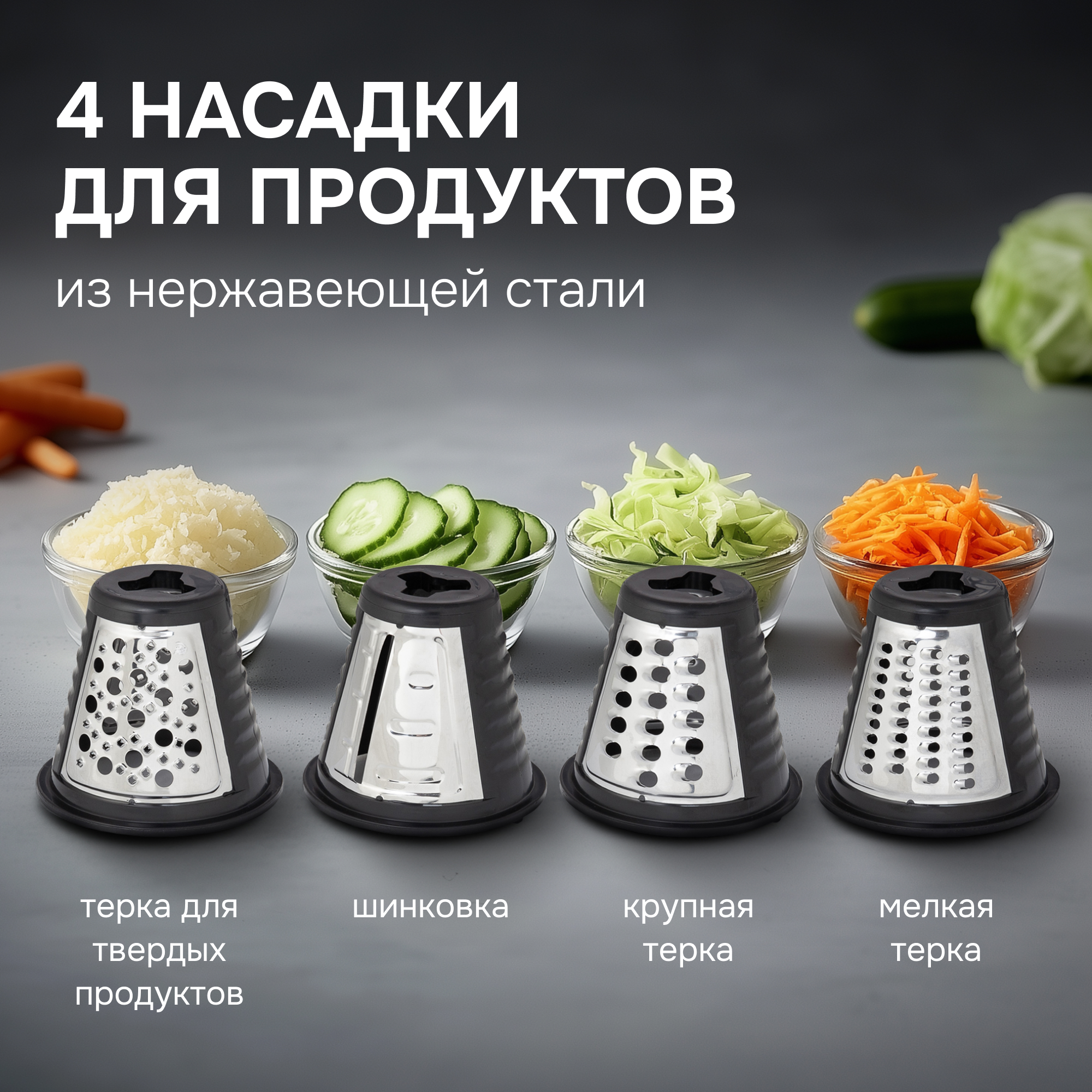 | Функциональные особенности | подача нарезанных продуктов непосредственно в блюдо, подходит для капусты, моркови, картошки, сыра и многого другого. |