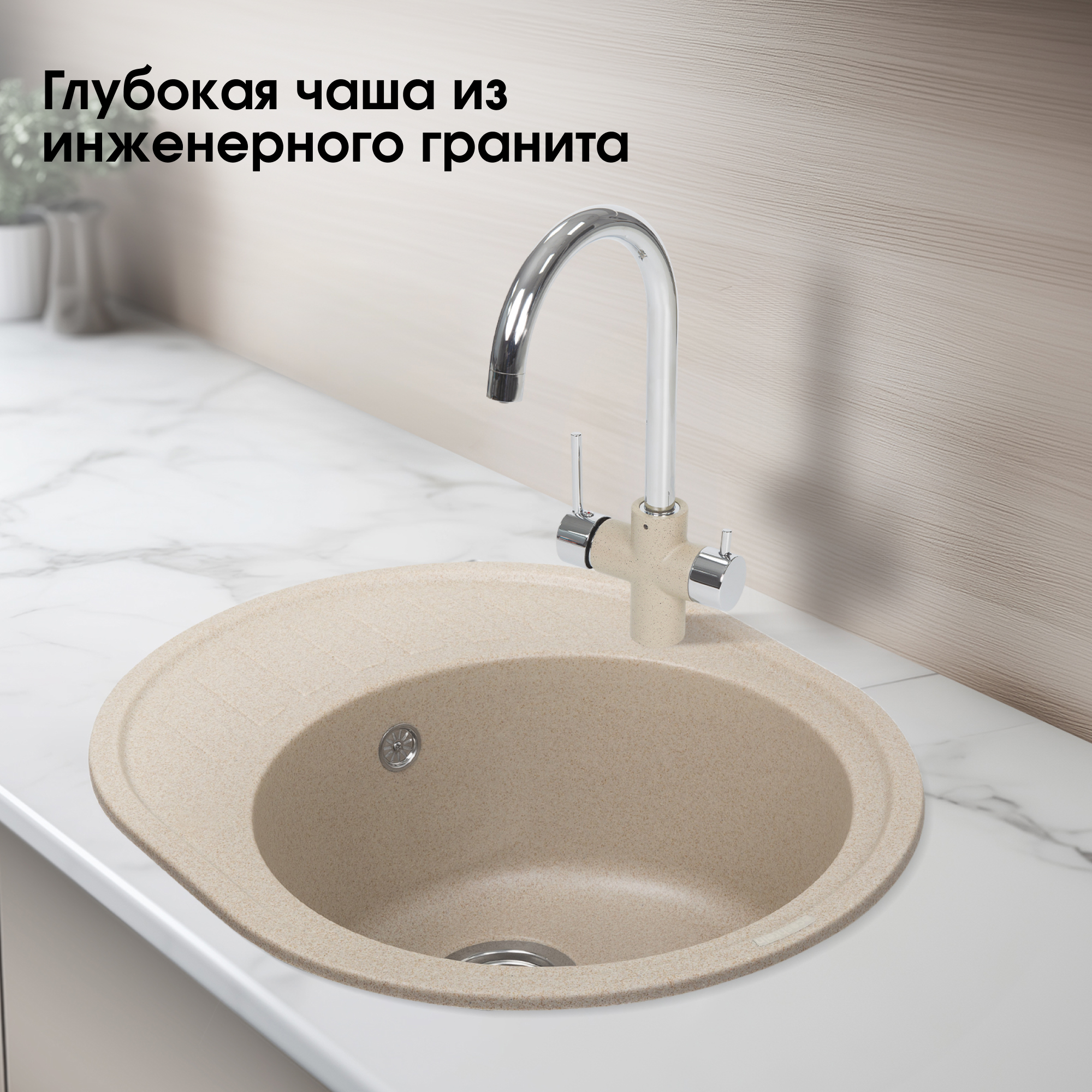 Кухонная мойка Ecoshtein Ecoshtein KREIS OV 620 Бежевый — практичное и презентабельное решение для создания идеального кухонного пространства.