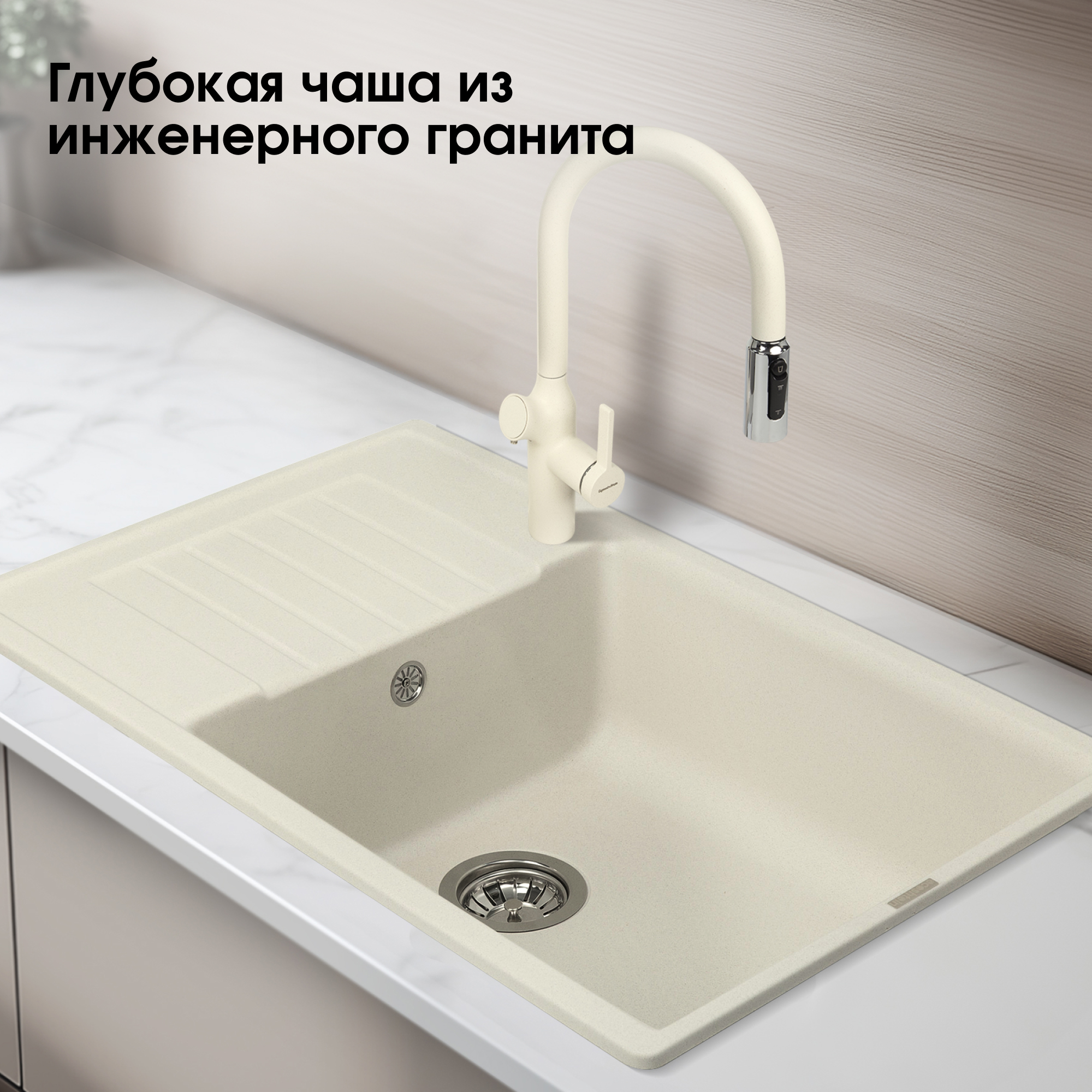 Кухонная мойка Ecoshtein Ecoshtein RECHTECK 780.500 Капучино — практичное и презентабельное решение для создания идеального кухонного пространства.