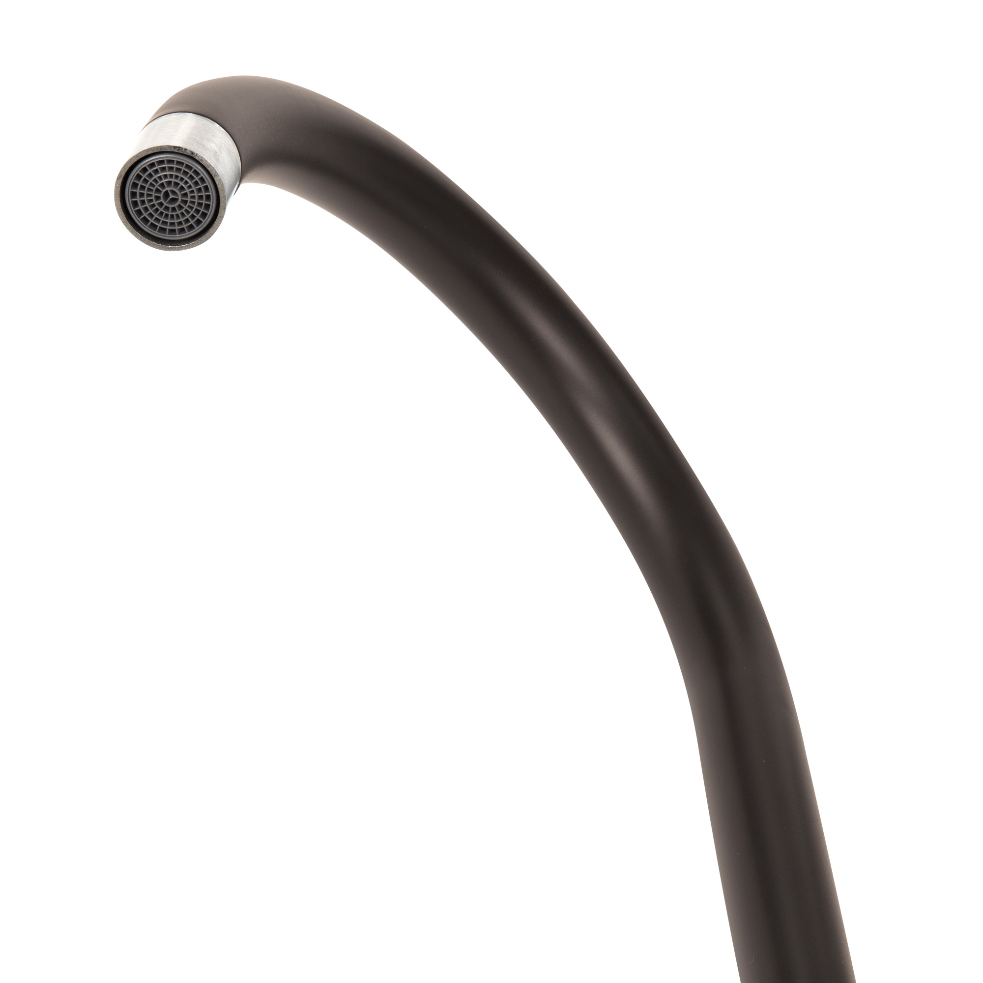 Однорычажный смеситель с керамическим картриджем, аэратором и корпусом из латуни, покрытым порошковой краской. Имеет компактные размеры 305*240 мм и подходит для различных типов раковин. Управление смесителем осуществляется с помощью рычага, подключение к системе водоснабжения стандартное.