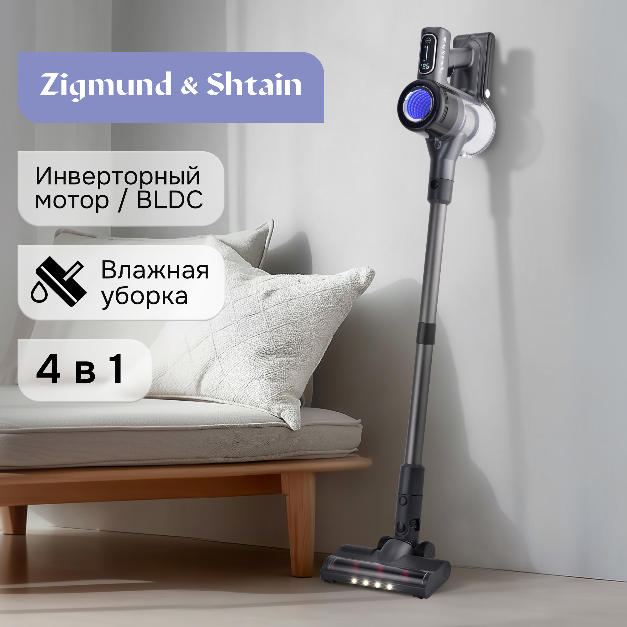 Вертикальный беспроводной пылесос Zigmund & Shtain ZVC‑1510: двойная сила чистоты