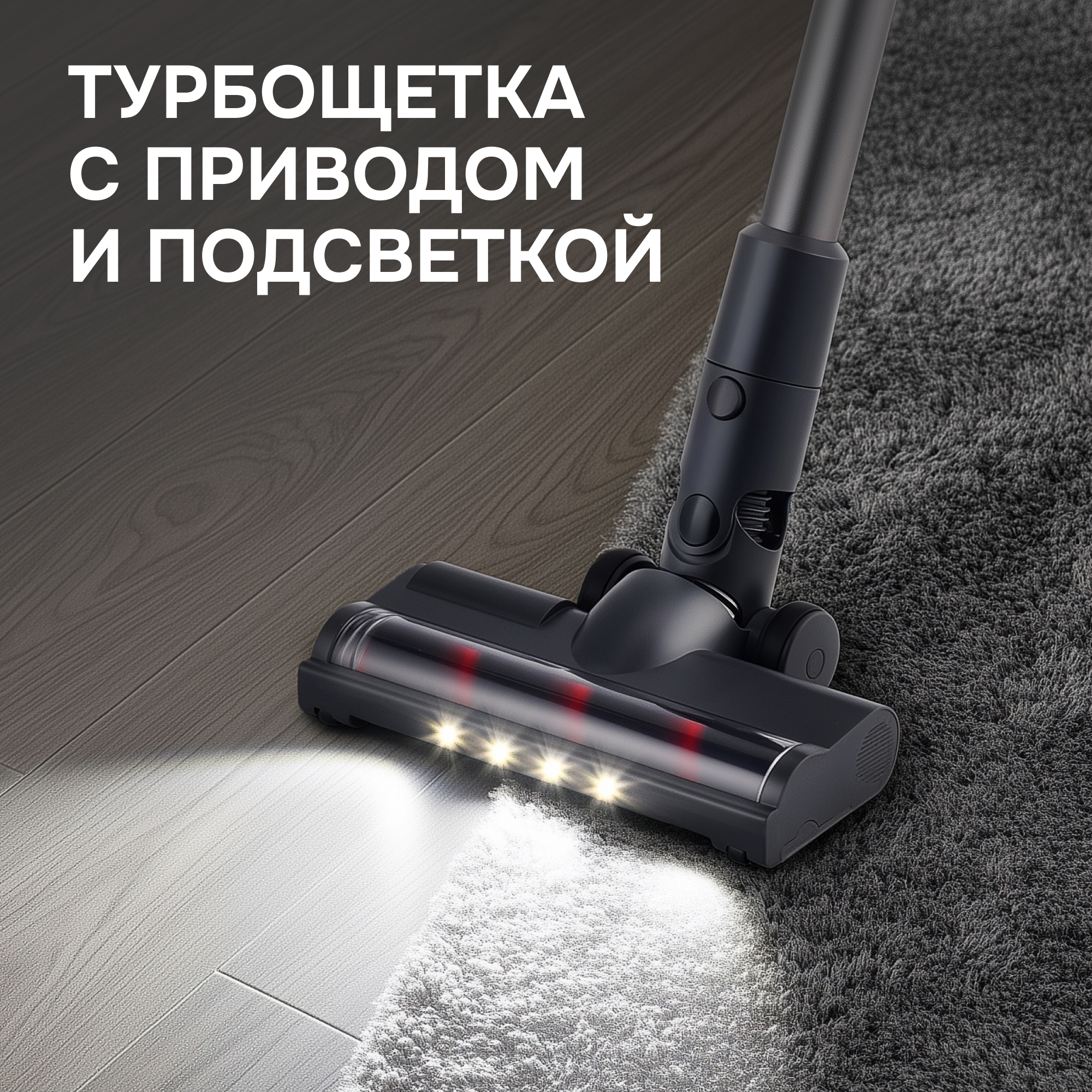 - Подсветка зоны уборки — ничего не упустите даже в тёмных углах.